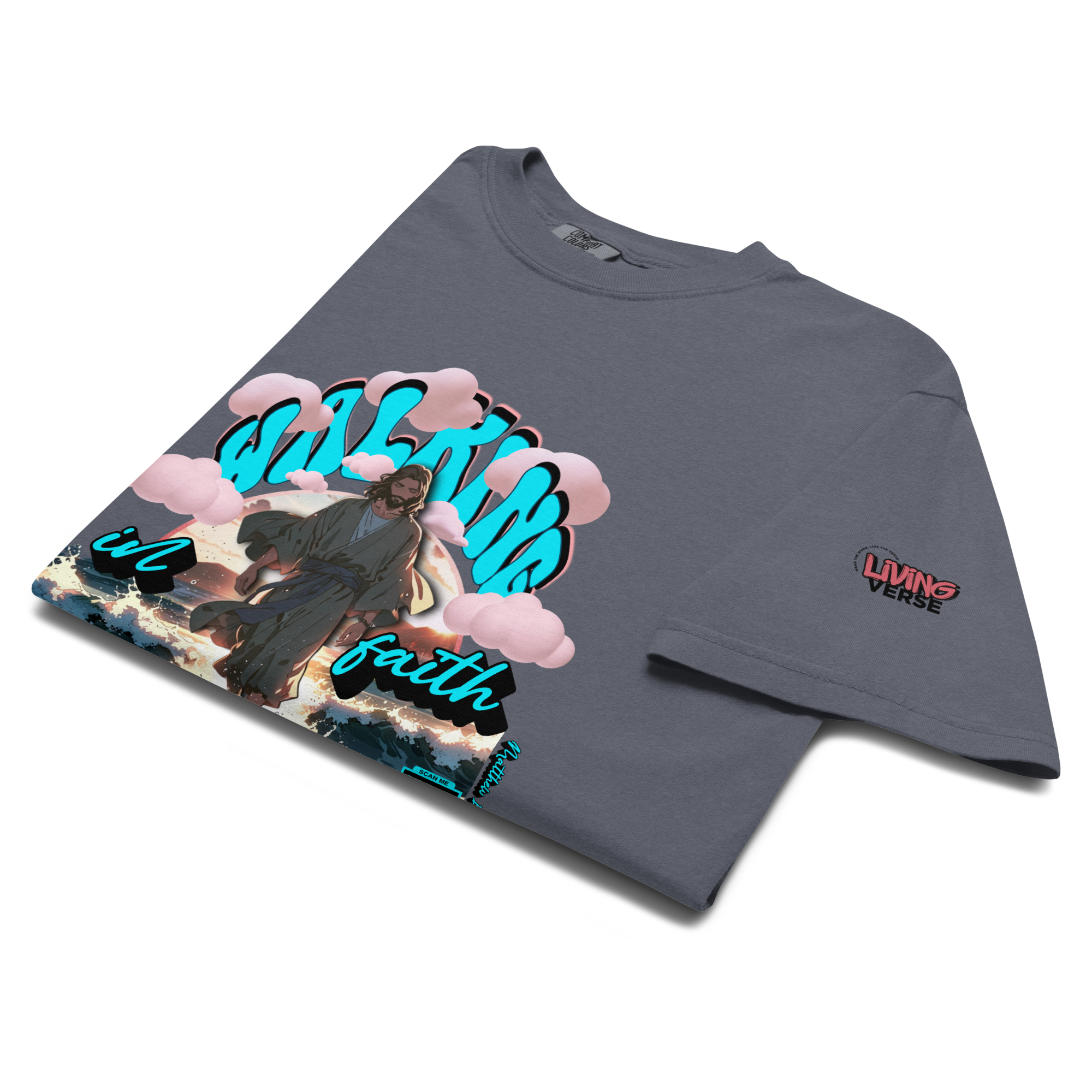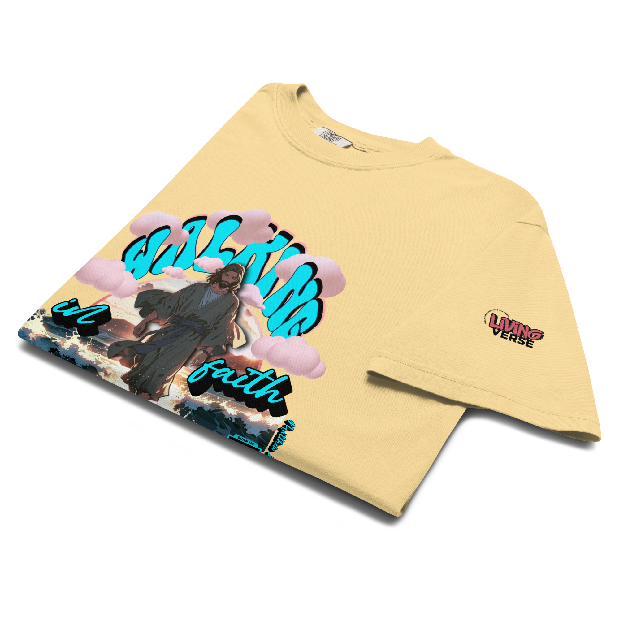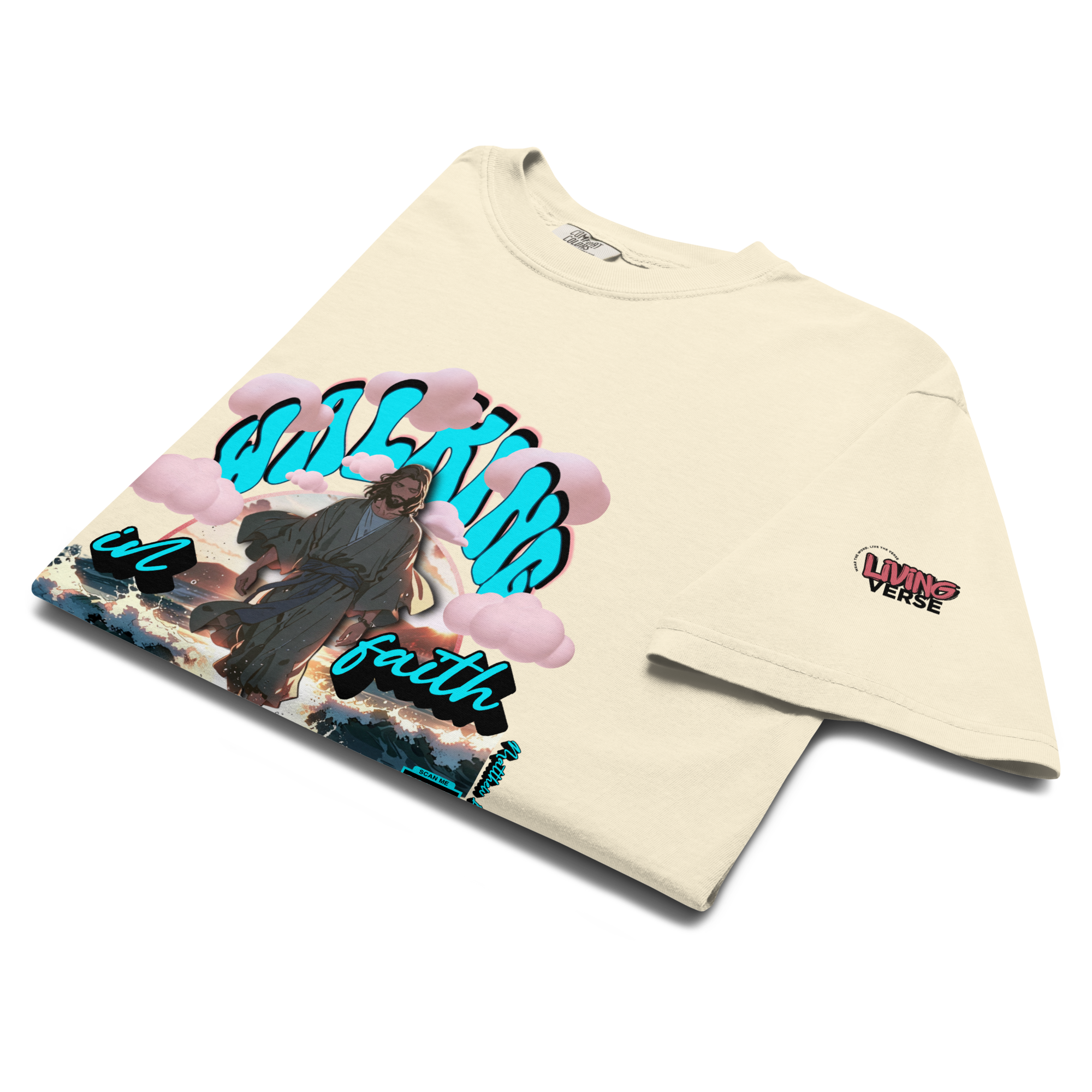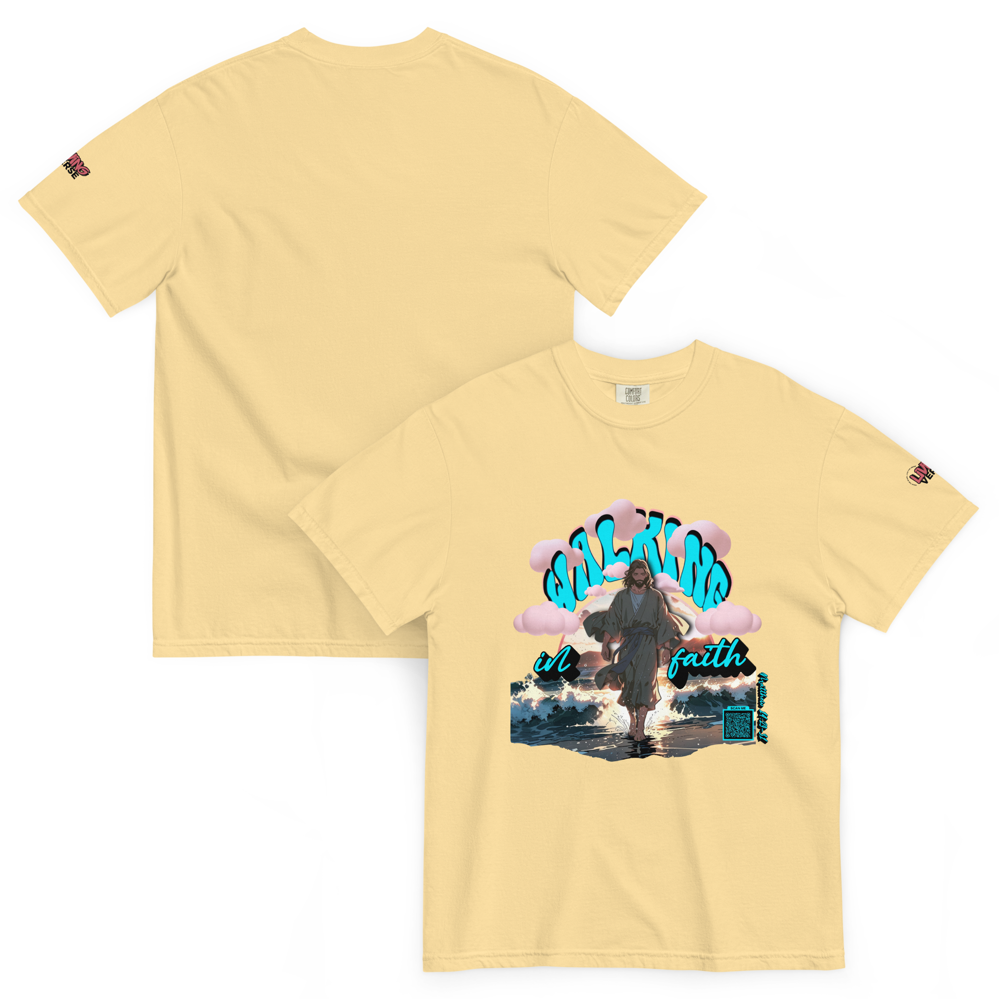 This verse is woven into the artwork and brought to life through an embedded QR code. Scan it to experience the scripture in a dynamic way, deepening your connection to God’s word. Designed for those who want to make a statement with style and spirit.